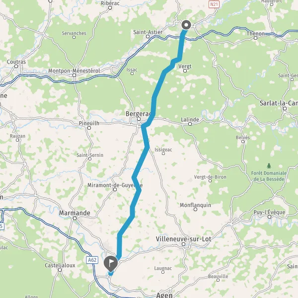Au rond-point, prendre la 1ère sortie sur D6021 (Rue de Bergerac) et continuer sur 300 mètres