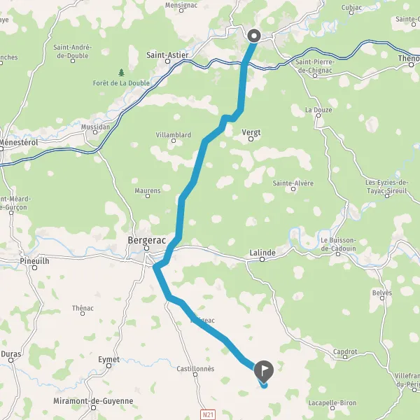Au rond-point, prendre la 3ème sortie sur N21 (Route de Pantouquet) et continuer sur 6,6 kilomètres