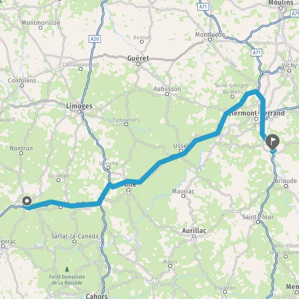Prendre à droite et rejoindre A89 A71 E11 E70. Continuer sur 23 kilomètres