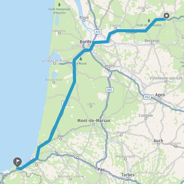 Prendre à droite et rejoindre A63. Continuer sur 205 kilomètres