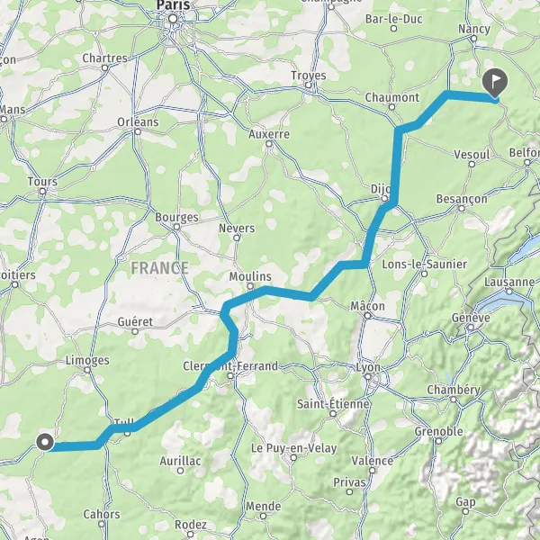 Prendre à droite et rejoindre A89 E70. Continuer sur 69 kilomètres