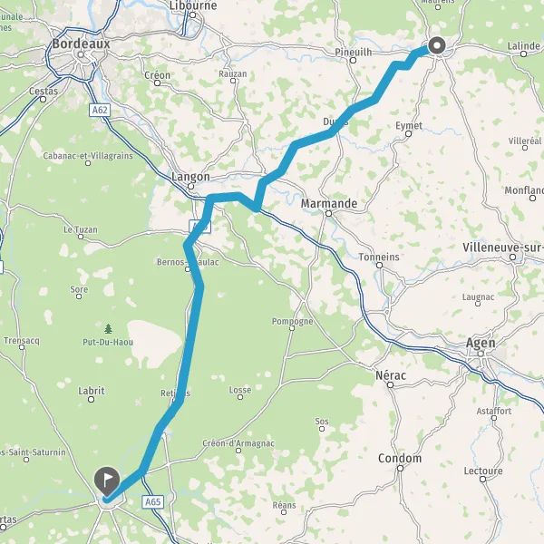 Prendre à droite et rejoindre A65. Continuer sur 71 kilomètres