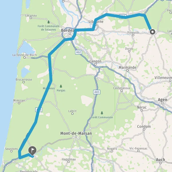 Prendre à droite et rejoindre A63. Continuer sur 139 kilomètres