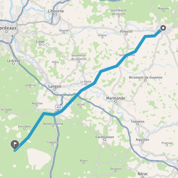 Tourner légèrement à droite sur D222 (Route de Préchac) et continuer sur 5,1 kilomètres