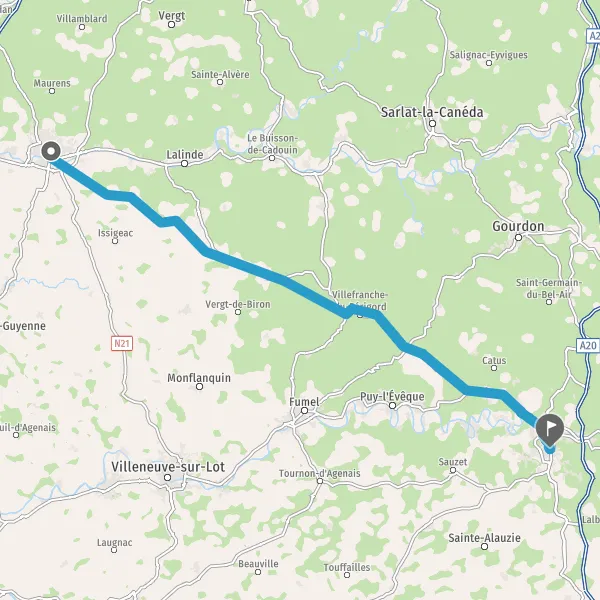Tourner à droite sur D19 (Route de Saint-Nexans) et continuer sur 20 kilomètres