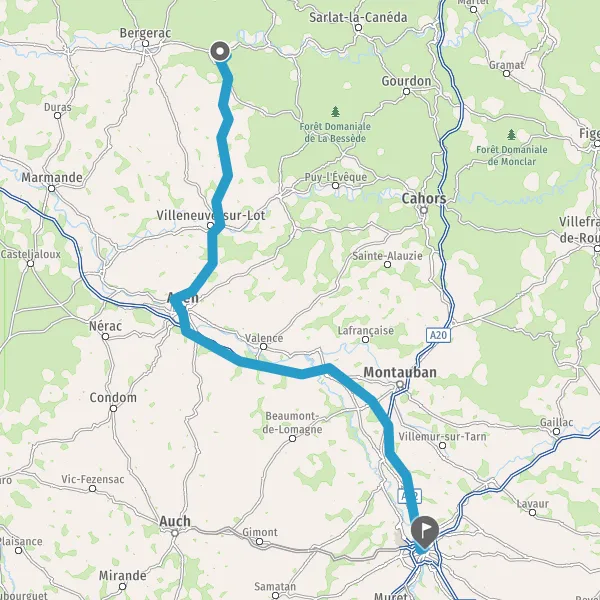 Au rond-point, prendre la 3ème sortie sur D676 (Boulevard des Ducs de Biron) et continuer sur 13 kilomètres
