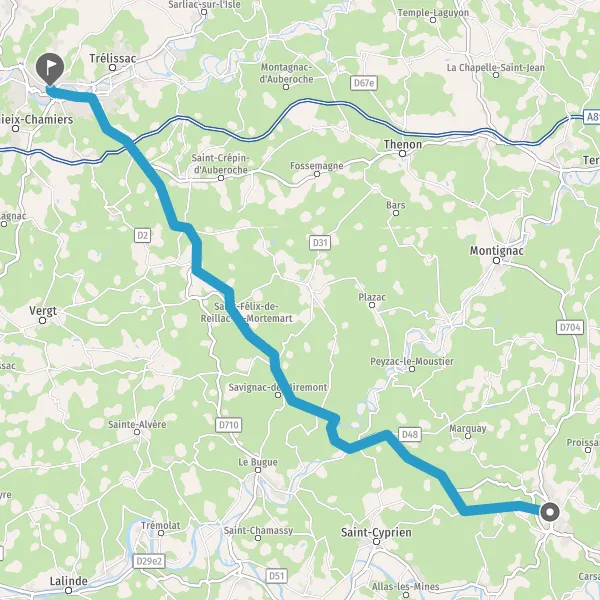 Tourner à gauche sur D47 (Route des Eyzies) et continuer sur 11 kilomètres