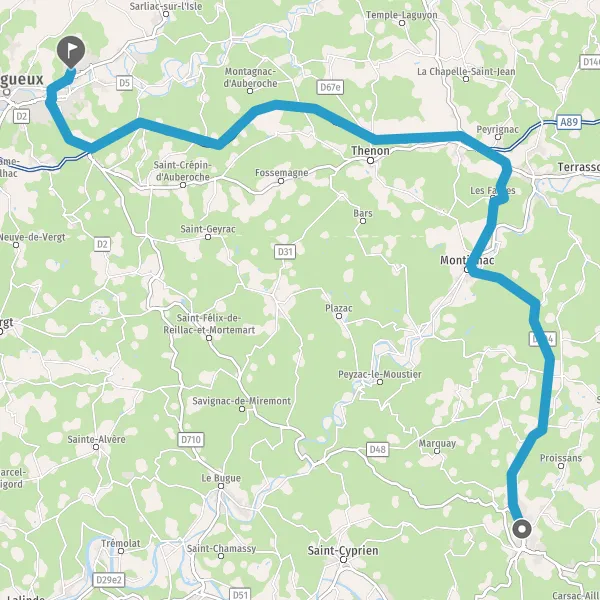 Prendre à droite et rejoindre A89 E70. Continuer sur 32 kilomètres