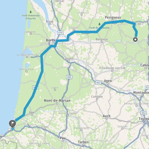 Prendre à droite et rejoindre A63. Continuer sur 172 kilomètres