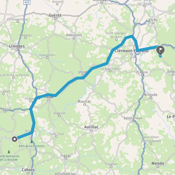 Prendre à droite et rejoindre A89 A71 E11 E70. Continuer sur 19 kilomètres
