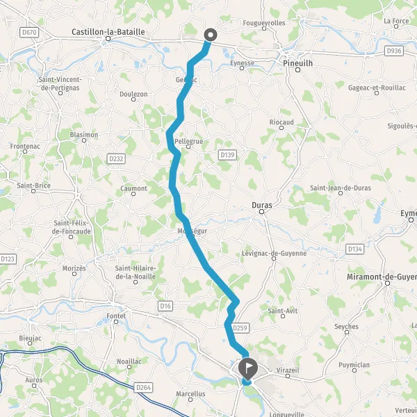Tourner à droite sur D708 (Route de Duras) et continuer sur 3,9 kilomètres