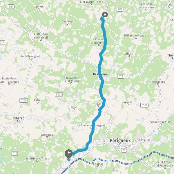 Tourner légèrement à droite sur D3 (Route de Périgueux) et continuer sur 450 mètres