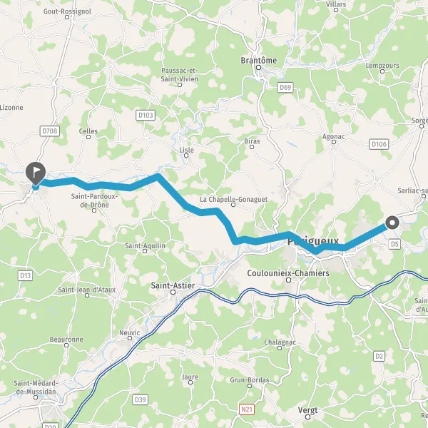 Tourner à gauche sur N21 (Route de Limoges) et continuer sur 2,5 kilomètres