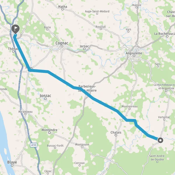 Au rond-point, prendre la 2ème sortie sur D731 (Route d'Archiac) et continuer sur 9,2 kilomètres