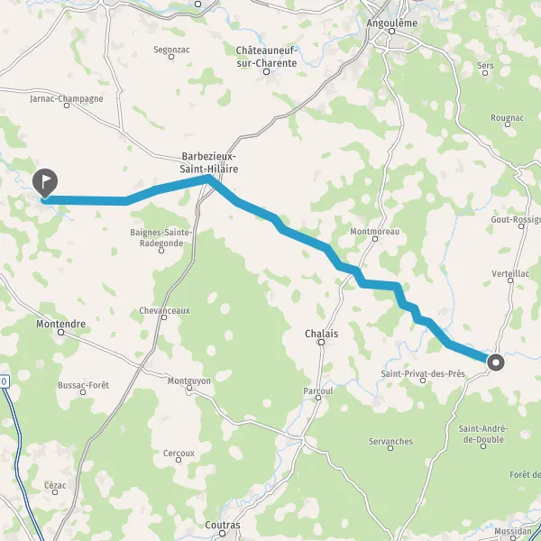 Tourner légèrement à droite sur D24 (Route de Montmoreau) et continuer sur 600 mètres