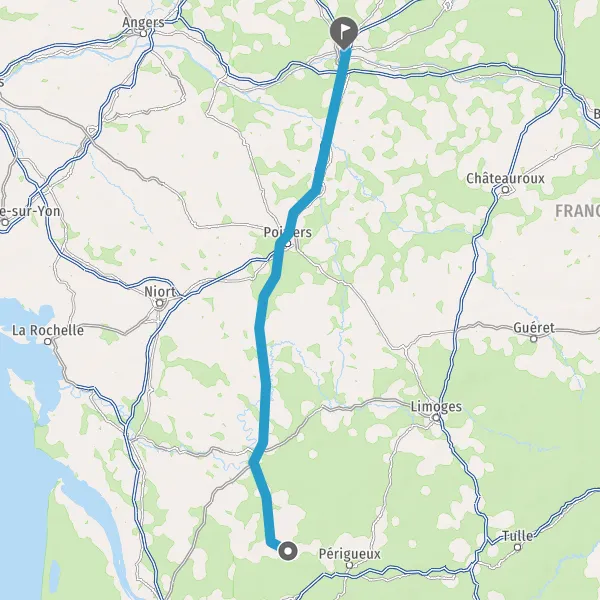 Au rond-point, prendre la 2ème sortie sur D939 (Route de Périgueux) et continuer sur 14 kilomètres