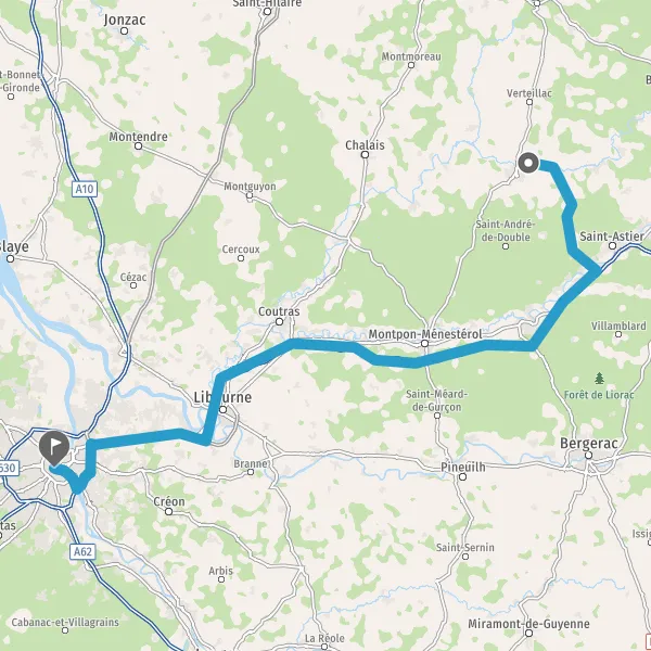 Tourner légèrement à gauche sur D104 (Route des Hauts de Dronne) et continuer sur 6 kilomètres