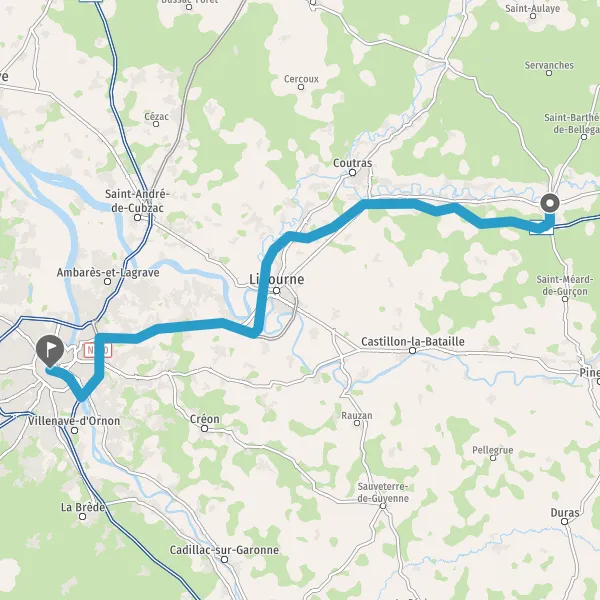 Avec le mode voiture, vous pouvez configurer vos options (type de véhicule, autoroute ou non, péage ou non, distance la plus courte), tout en ayant accès aux infos de circulation grâce à notre service d'info-trafic en temps réel. Ainsi faites des économies sur le coût ou la durée de votre voyage, en trouvant le trajet Montpon-Ménestérol Bordeaux adapté à vos besoins.