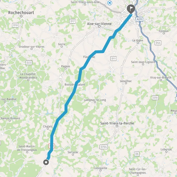 Tourner à gauche sur D20 (Avenue de Limoges) et continuer sur 5,3 kilomètres