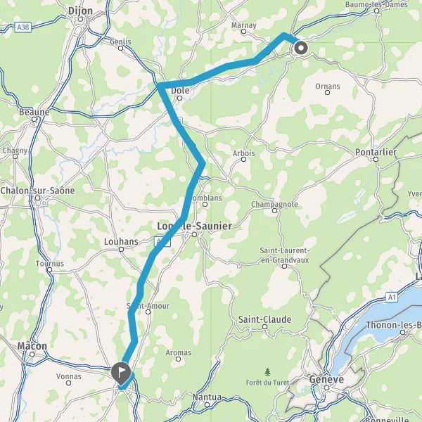 Prendre à gauche et rejoindre A39. Continuer sur 114 kilomètres