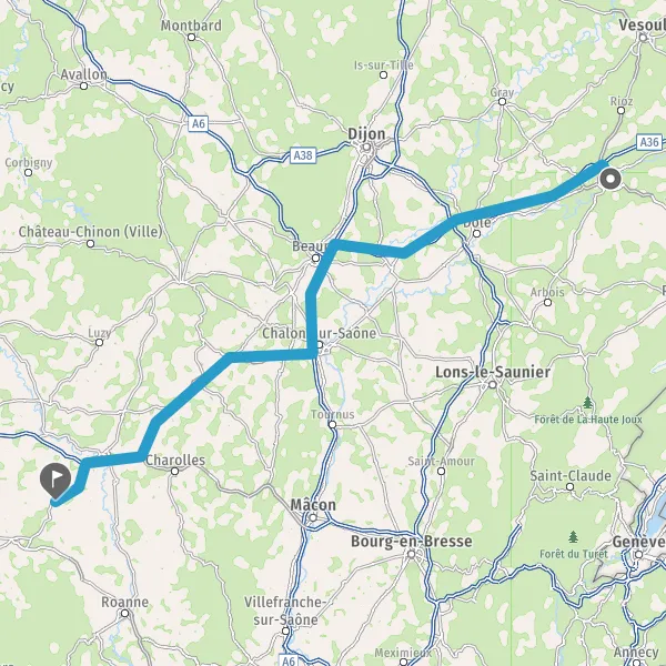 Prendre à droite et rejoindre A36. Continuer sur 93 kilomètres