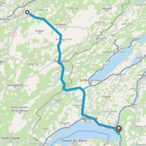 Tourner légèrement à droite sur N57 E23 (Faubourg Rivotte) et continuer sur 22 kilomètres