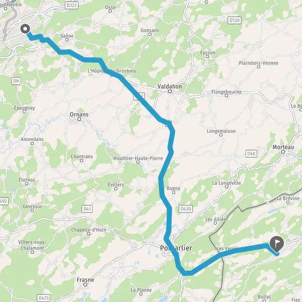 Tourner légèrement à droite sur N57 E23 (Faubourg Rivotte) et continuer sur 22 kilomètres