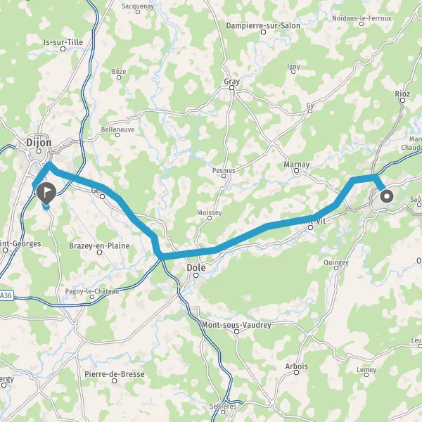Prendre à droite et rejoindre A36. Continuer sur 51 kilomètres