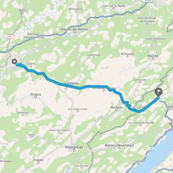 Tourner légèrement à droite sur D215 (Route de Villers-le-Lac) et continuer sur 170 mètres