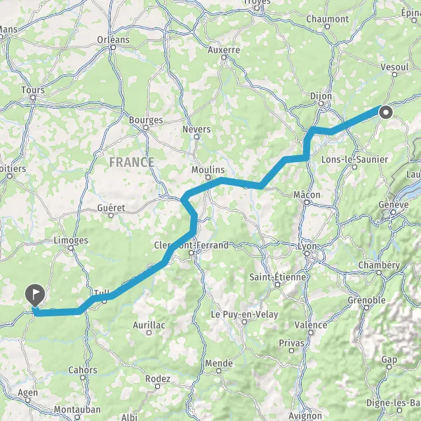 Prendre à droite et rejoindre A89 E70. Continuer sur 160 kilomètres