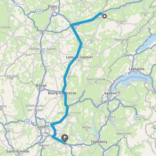 Prendre à gauche et rejoindre A39. Continuer sur 134 kilomètres