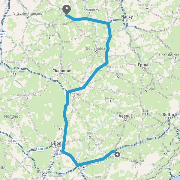 Prendre à droite et rejoindre N57 E23 (Rue de Vesoul). Continuer sur 1,7 kilomètre