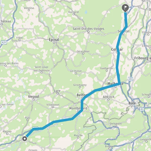 Prendre à droite et rejoindre N57 E23 (Rue de Vesoul). Continuer sur 1,7 kilomètre
