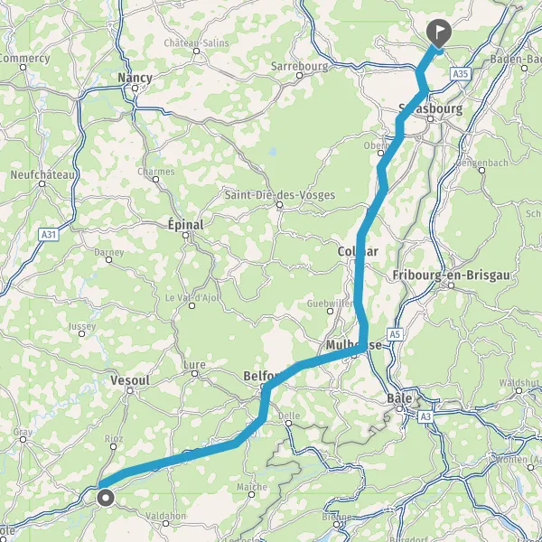 Prendre à droite et rejoindre A36. Continuer sur 133 kilomètres