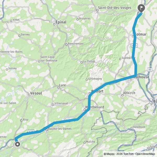 Prendre à droite et rejoindre N57 E23 (Rue de Vesoul). Continuer sur 1,7 kilomètre