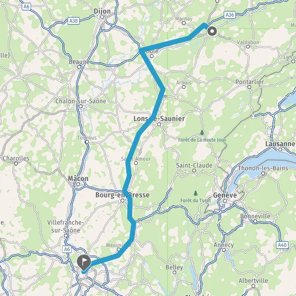 Prendre à gauche et rejoindre A39. Continuer sur 134 kilomètres