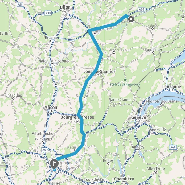 Prendre à gauche et rejoindre A39. Continuer sur 134 kilomètres
