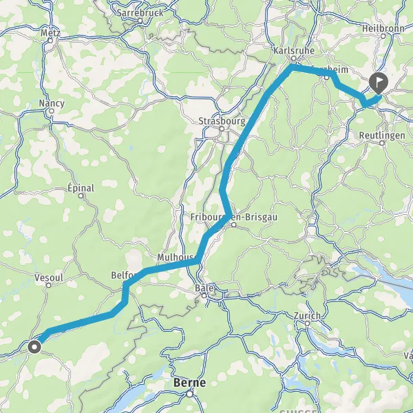 Prendre à droite et rejoindre N57 E23 (Rue de Vesoul). Continuer sur 1,7 kilomètre