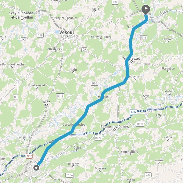 Tourner légèrement à droite sur D486 (Rue de Besançon) et continuer sur 4 kilomètres