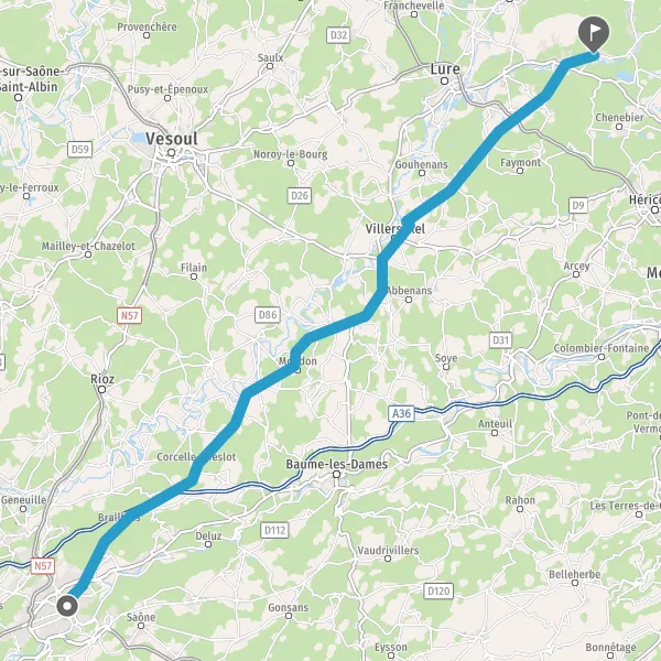 Tourner légèrement à droite sur D486 (Rue de Besançon) et continuer sur 4 kilomètres