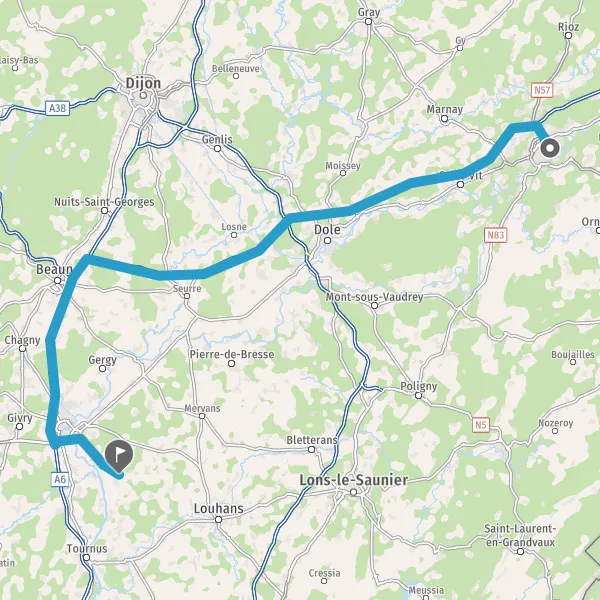 Prendre à droite et rejoindre N57 E23 (Rue de Vesoul). Continuer sur 1,7 kilomètre