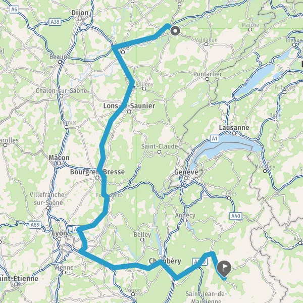 Prendre à droite et rejoindre A43. Continuer sur 19 kilomètres