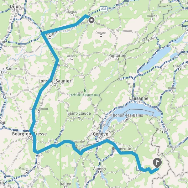 Tourner légèrement à droite sur N57 E23 (Faubourg Rivotte) et continuer sur 22 kilomètres