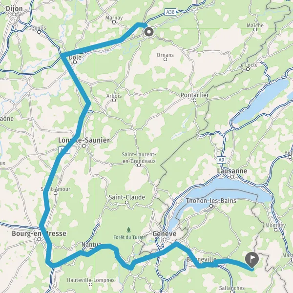 Tourner légèrement à droite sur N57 E23 (Faubourg Rivotte) et continuer sur 22 kilomètres