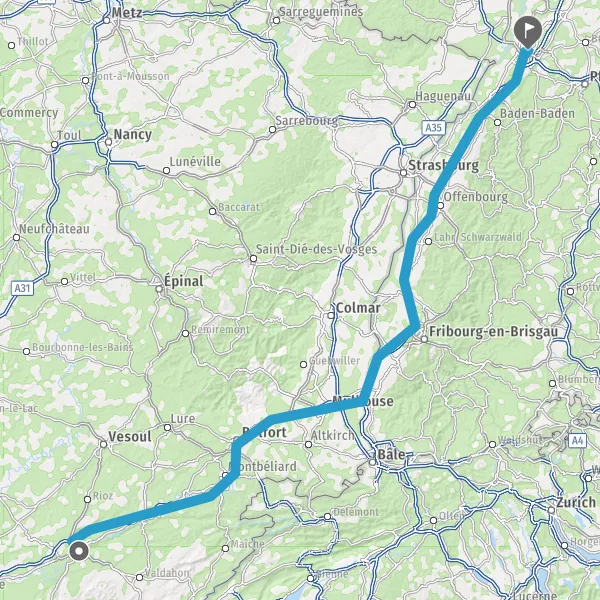 Prendre à droite et rejoindre N57 E23 (Rue de Vesoul). Continuer sur 1,7 kilomètre