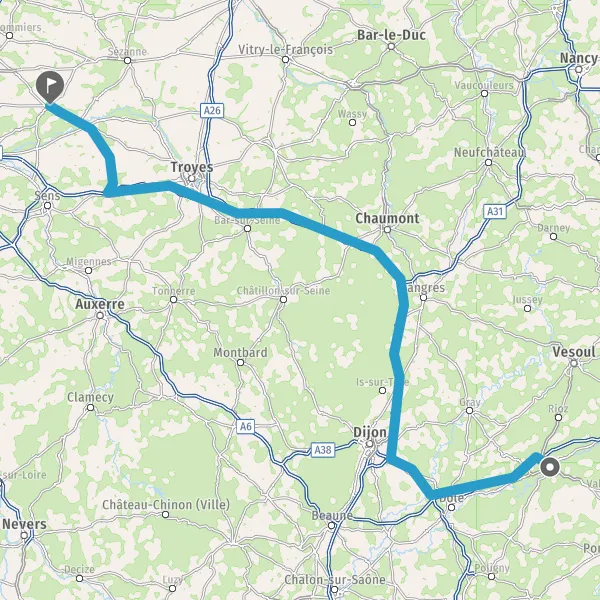 Prendre à droite et rejoindre A39. Continuer sur 26 kilomètres
