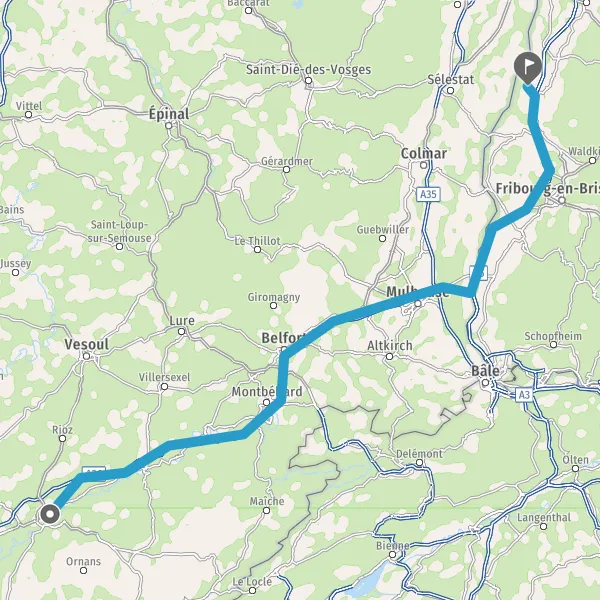 Prendre à droite et rejoindre N57 E23 (Rue de Vesoul). Continuer sur 1,7 kilomètre