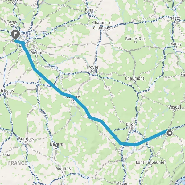 Prendre à droite et rejoindre A6. Continuer sur 293 kilomètres