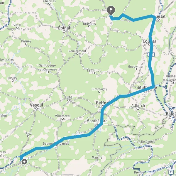 Prendre à droite et rejoindre N57 E23 (Rue de Vesoul). Continuer sur 32 kilomètres