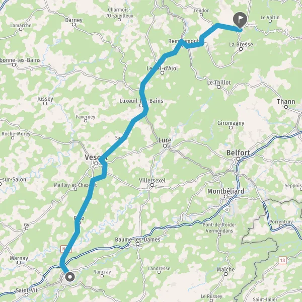 Prendre à droite et rejoindre N57 E23 (Rue de Vesoul). Continuer sur 32 kilomètres